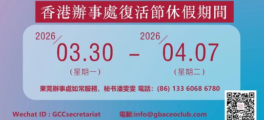 期間東莞辦事處將如常服務,如有任何需要,歡迎隨時聯絡秘書潘雯雯小姐。